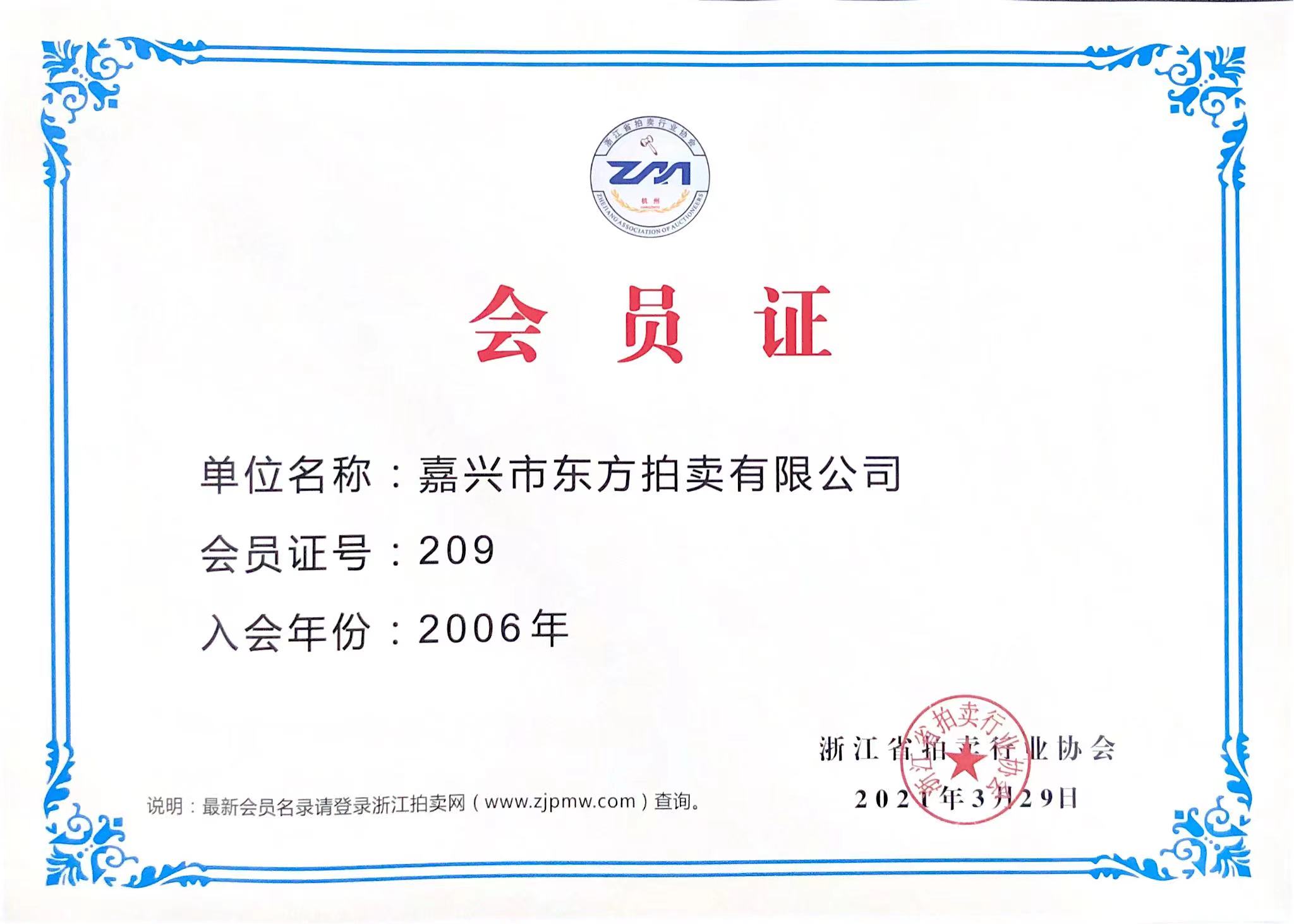 同時具有浙江省人民政府國資委頒發(fā)的“浙江省國有產(chǎn)權(quán)轉(zhuǎn)讓業(yè)務(wù)資格證書”,商務(wù)部國際貿(mào)易經(jīng)濟合作研究院發(fā)的誠信綜合等級“AAA”級證書,人民銀行中小企業(yè)信用評定中心頒發(fā)的信用等級“AAA”級證書,中國拍賣行業(yè)協(xié)會頒發(fā)的“AA”級拍賣企業(yè)證書, 2010年、2013年、2016年、2018、2021年連續(xù)榮獲浙江省工商企業(yè)守合同重信用“AA”級單位,連續(xù)榮獲2007年、2008年中共南湖區(qū)委宣傳部、嘉興市工商行政管理局南湖分局等部門聯(lián)合頒發(fā)的嘉興市南湖區(qū)區(qū)級“誠信企業(yè)”榮譽稱號,2008年—2011年度連續(xù)四年榮獲中共嘉興市委宣傳部、嘉興市工商行政管理局等部門聯(lián)合頒發(fā)的嘉興市市級“誠信企業(yè)”榮譽稱號(嘉興市拍賣業(yè)唯一獲獎?wù)撸瑯s獲首屆浙江省拍賣行業(yè)協(xié)會頒發(fā)的“浙江省省級誠信企業(yè)示范單位”榮譽證書,榮獲浙江省拍賣行業(yè)協(xié)會頒發(fā)的2009年度“浙江省拍賣業(yè)統(tǒng)計工作先進單位稱號”,榮獲浙江省拍賣行業(yè)協(xié)會頒發(fā)的“浙江省拍賣企業(yè)30強”單位,公司現(xiàn)為中國拍賣行業(yè)協(xié)會會員單位,浙江省拍賣行業(yè)協(xié)會(理事)會員單位、浙江省產(chǎn)權(quán)交易所會員單位。